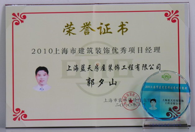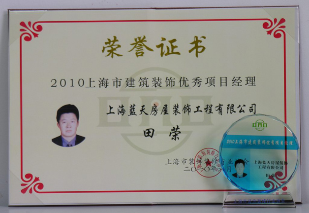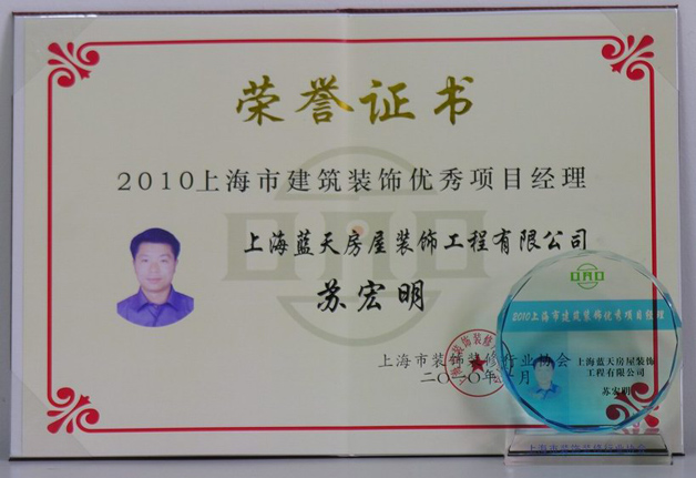 2010年06月,藍天公司田榮、郭夕山、蘇宏明三位項目經理被評為上海市建筑裝飾優秀項目經理。
