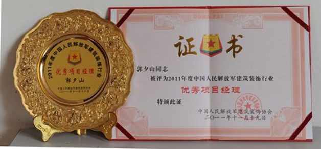 2011年11月,藍(lán)天公司郭夕山、周東賢、王興三位同志被評(píng)為2011年中國(guó)人民解放軍建筑裝飾行業(yè)優(yōu)秀項(xiàng)目經(jīng)理。