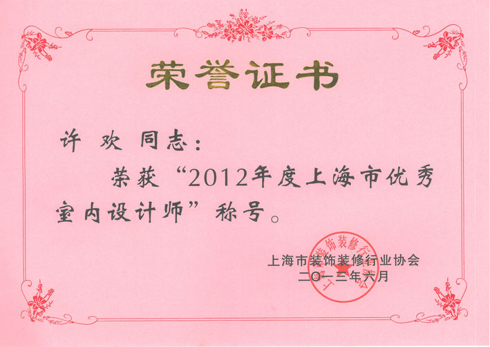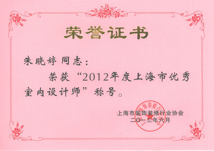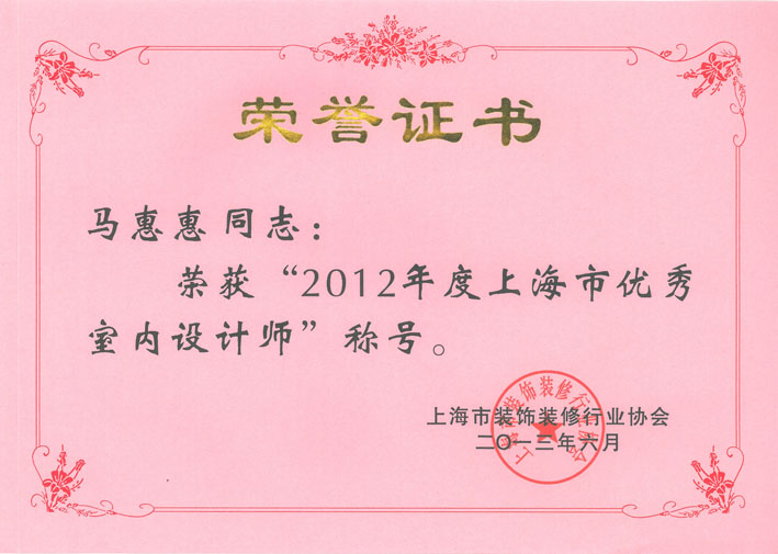 2、藍天公司朱曉婷、許 歡、馬惠惠三位設計師被評為“2012年度上海市優秀室內設計師”。