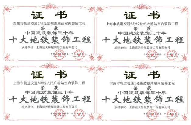 “中國建筑裝飾三十年”十大地鐵,上海藍天房屋裝飾工程有限公司參建四個。