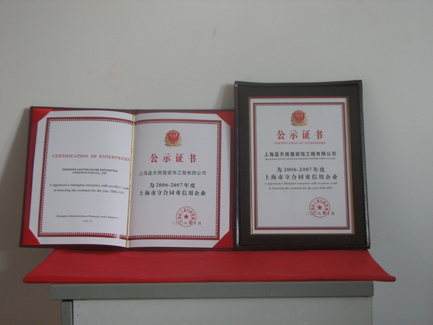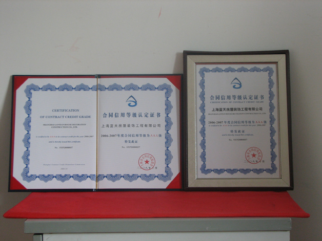 2008年10月藍(lán)天公司被上海市合同信用促進(jìn)會(huì)評(píng)為2006-2007年度合同信用等級(jí)AAA級(jí)企業(yè);上海市工商行政管理局 也頒發(fā)了2006-2007年度上海市“守合同重信用企業(yè)”證書 。在合同信用等級(jí)方面,藍(lán)天公司自1996年至今,一直被上海市合同信用促進(jìn)會(huì)、上海市工商行政管理局評(píng)為AAA級(jí)企業(yè)。