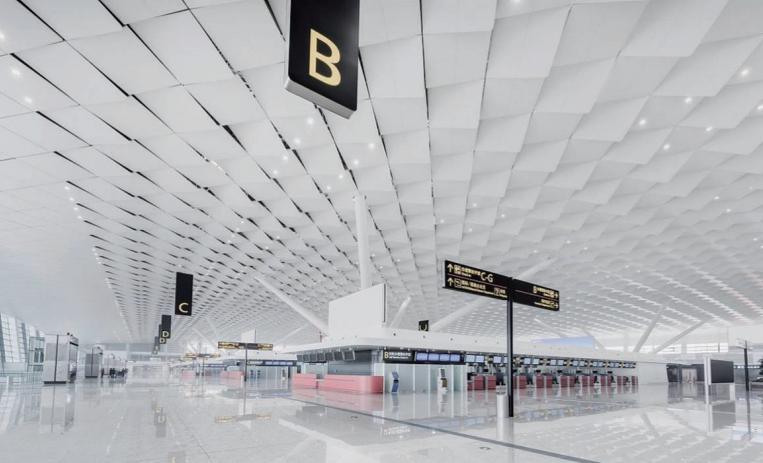新鄭國際機場T2航站樓,建筑面積48.5萬平方米。我司參與主樓(約12萬平方米)大屋面天花的裝飾施工。