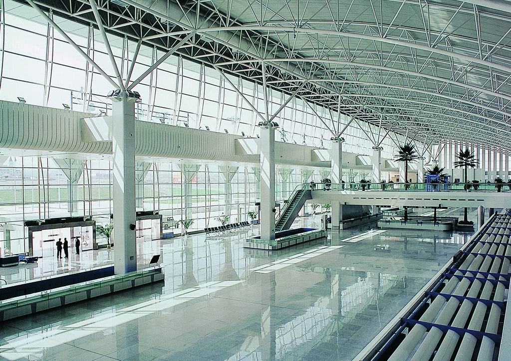 烏魯木齊地窩堡國際機場航站樓是我國西部新建的規模較大的工程。我公司在原建筑設計架構和空間及系統配置的基礎上,深化完善了空間效果設計。在裝飾工程施工中,以我公司行之有效、嚴密、高標準的管理模式,以優良的工程質量完成了任務。得到新疆烏魯木齊機場指揮部的高度評價:上海藍天房屋裝飾工程公司項目部實行現場半軍事化管理,是一大特色。他們嚴格按規章制度及項目部的量化管理模式,使現場從總體到細節的管理,都能得到明顯體現。使安全生產、文明施工、嚴把質量關,以及工程進度,都能落到實處,成為整個工地的一支“標桿施工隊伍”。在階段性的施工綜合評比中,是唯一一家獲得嘉獎的單位。