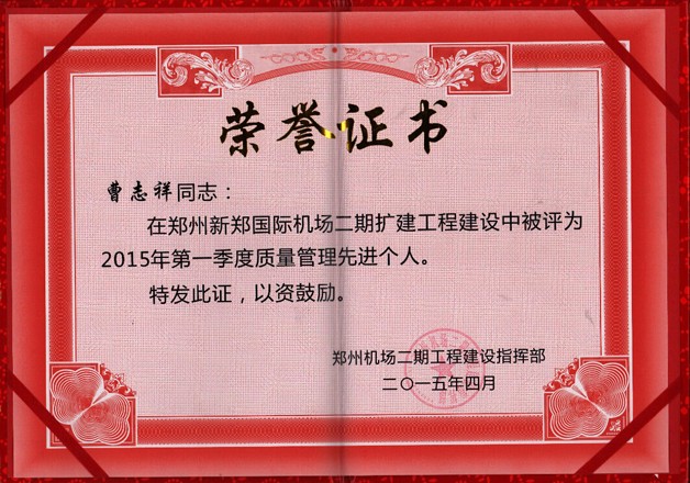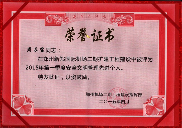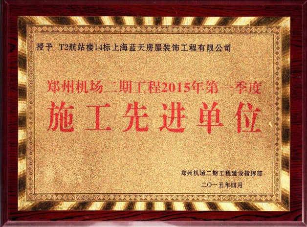機場指揮部定期對各家建設單位、施工節點進行工作考評,我司在鄭州機場T2航站樓鋼構、安裝、消防、弱電、幕墻、精裝修等20多家參建單位中綜合排名第一;在鄭州機場二期航站區260多家參建單位中綜合排名第二;多位項目管理人員被評為“先進個人”。